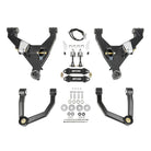 All essential mounting hardware is provided, and the kit supports multiple installation setups, whether you opt for coilovers only, coilovers with bypasses, or coilovers with bump stops. To accommodate the bump stops, the control arms feature an aluminum strike pad mounted to the bypass tabs, engaging at the optimal point throughout the suspension cycle.